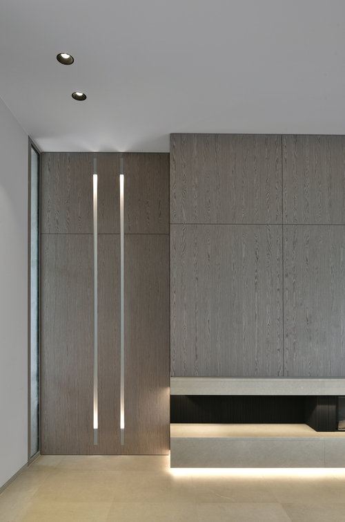 kreon dolma is a recessed aluminium profile (50mm or 80mm wide) for walls or ceilings, available in black or natural anodized finish. It integrates LED elements at one end, serving as a subtle architectural beacon in residential or public spaces.